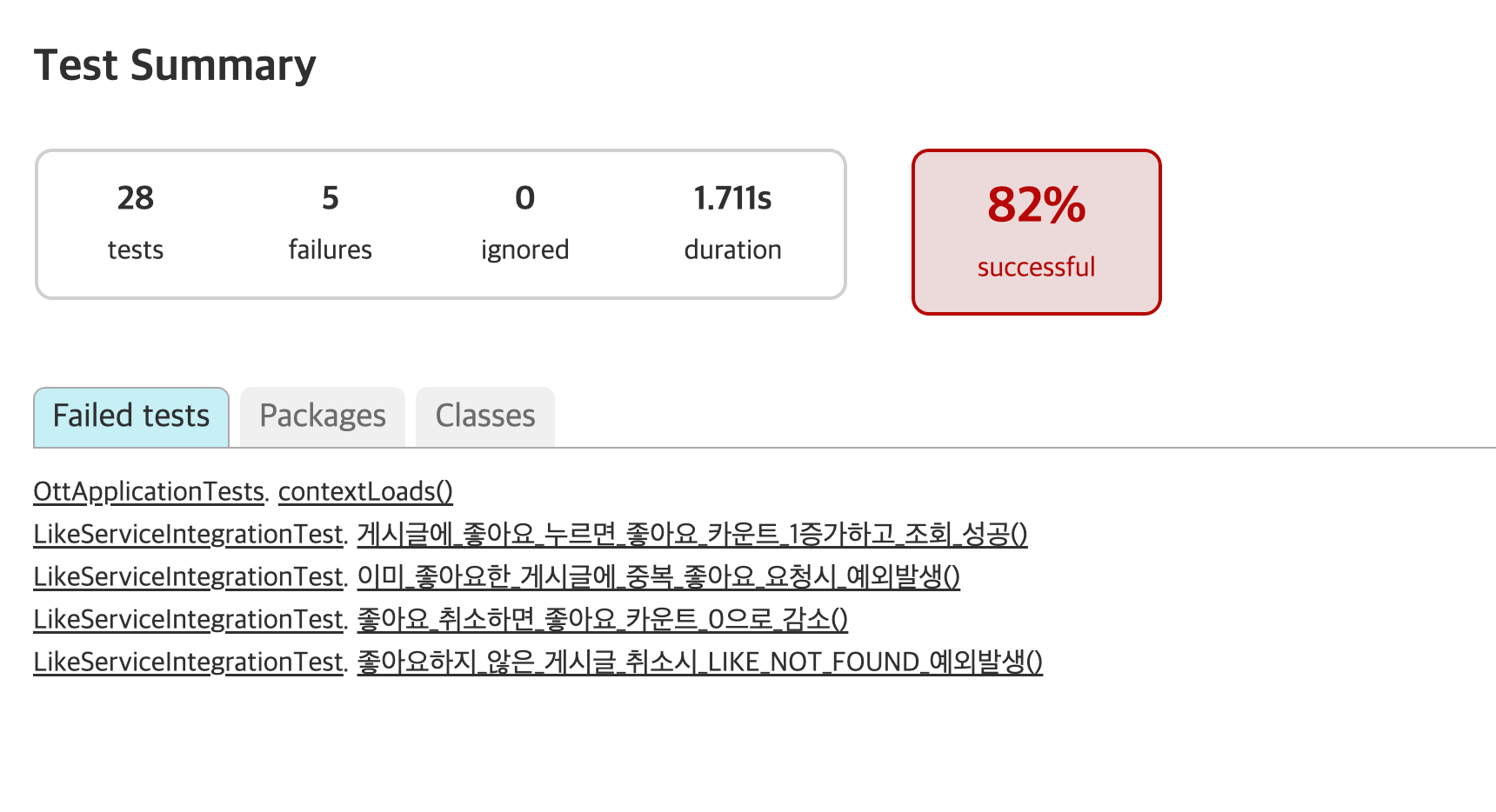 Spring Boot에서 ./gradlew test를 실행하면 Gradle은 기본적으로 build/reports/tests/test/index.html에 HTML 형식의 리포트를 생성한다.