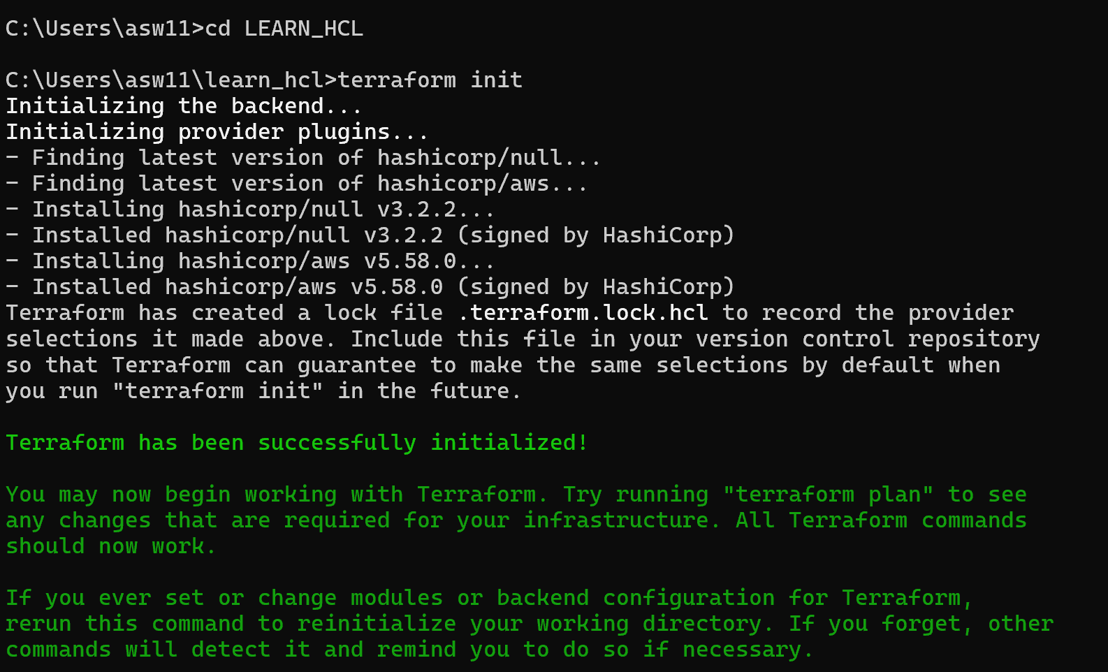 이제 해당 terminal로 해당 경로에 들어가서 terraform init-> terraform plan-> terraform apply 를 차례로 실행해보자.