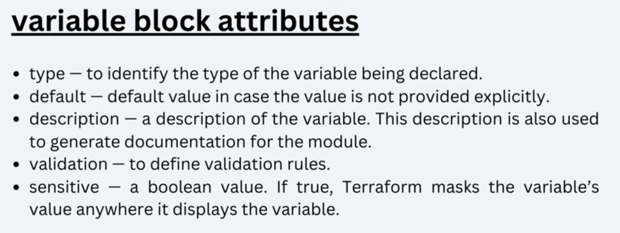 terraform이 초기화혹은 실행되는 동안 CLI promt를 통해 정의하는 방법