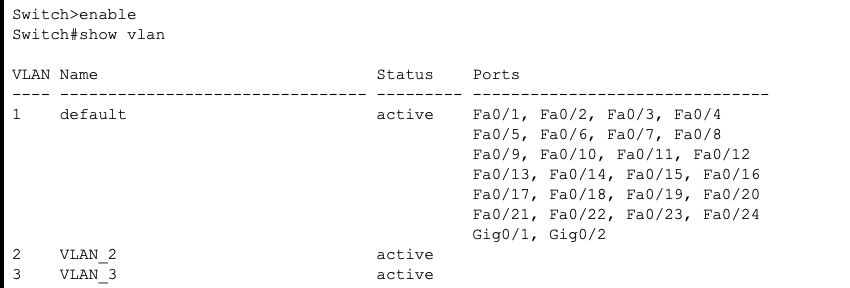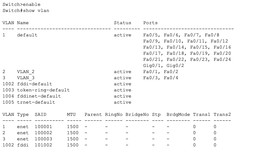 • Switch0 관리자 모드 → show vlan