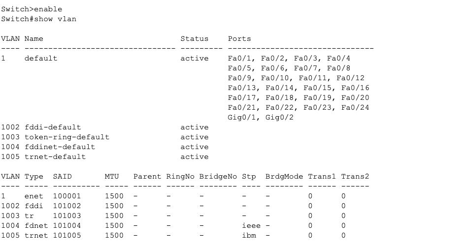 • 관리자 모드에서 "show vlan"