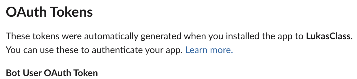 SLACK_BOT_TOKEN에 해당 Token을 붙여넣어줍니다.