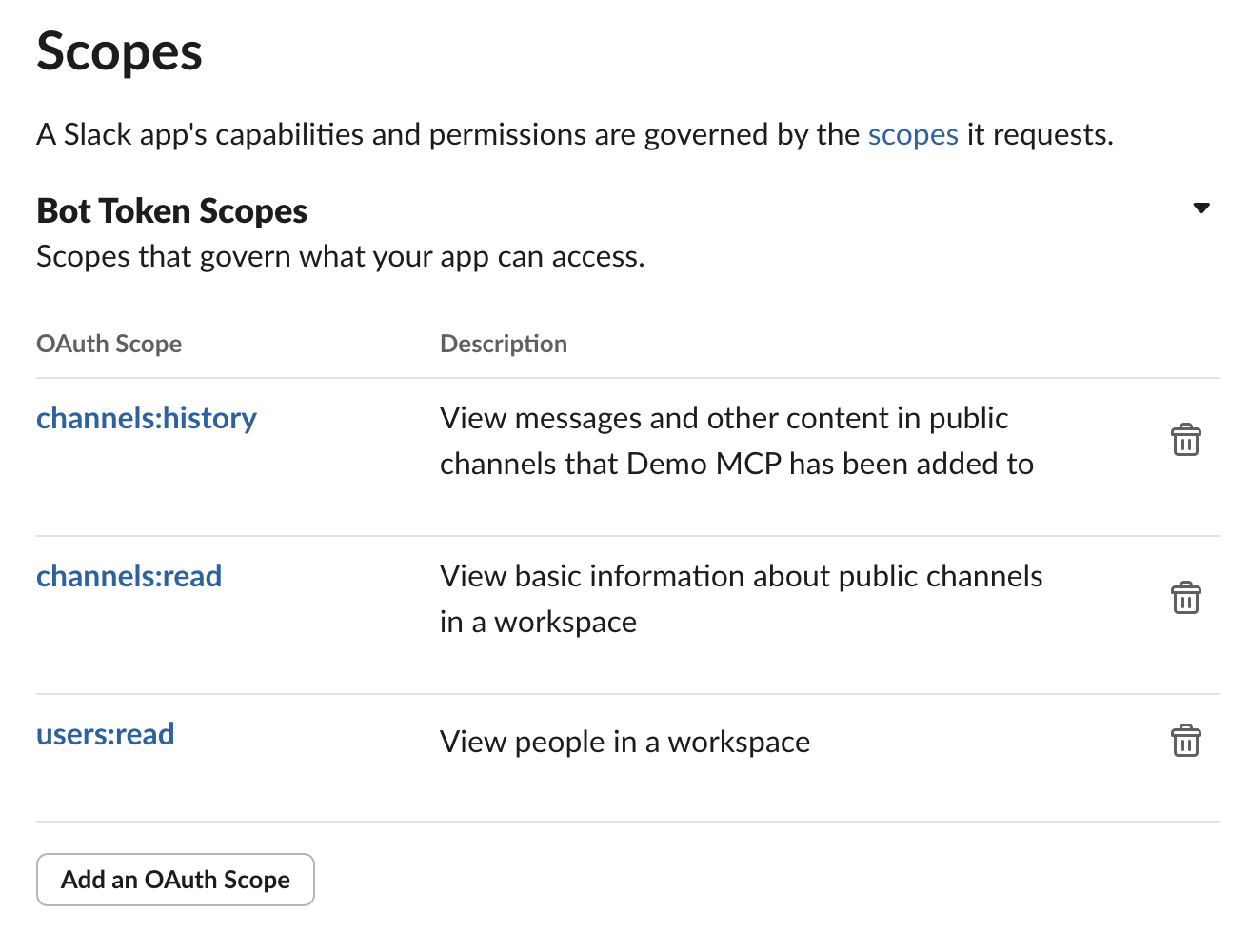 - 위 Slack MCP Server env 에 필요한 정보를 삽입하기 위해 Slack API App을 만들어줍니다.
