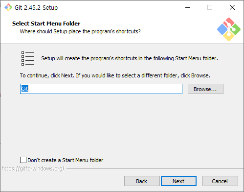 (만약 만들기를 원하지 않는다면 'Don't create a Start Menu folder' 체크박스를 선택해주자)