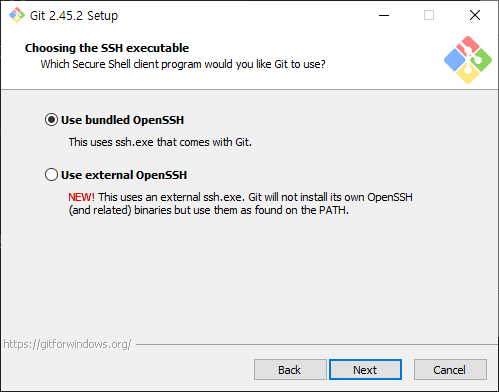 이 경우 Git에서 기본으로 제공하는 OpenSSH는 설치하지 않으며 PATH에 명시된 OpenSSH를 사용한다