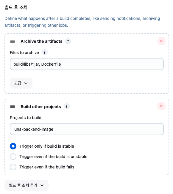 - Artifacts to copy :: build/libs/*.jar, Dockerfile