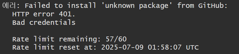 확인하여보니 개인토큰이 만료되거나 없어서 생긴문제로 확인되었다.