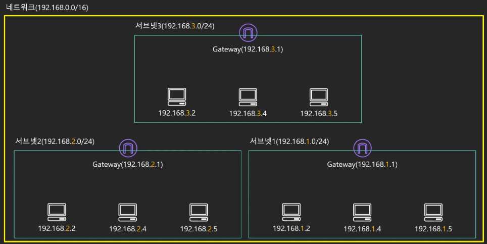 사진에서처럼 쪼개진 3개의 네트워크 단위(서브넷)인 서브넷이 바로 CIDR 블럭이다.