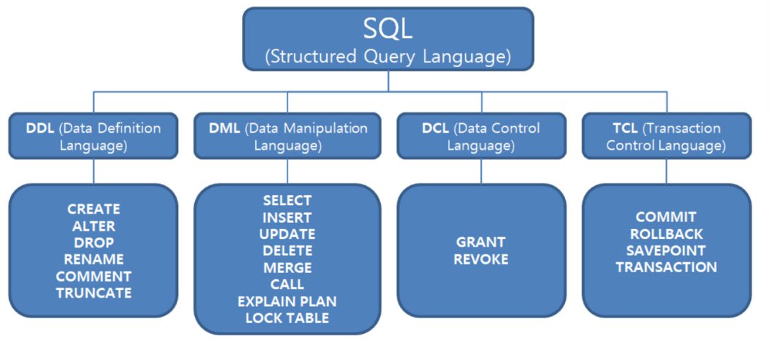 🔗 https://velog.io/@jude0124/DBMS-%EB%8D%B0%EC%9D%B4%ED%84%B0-%EC%96%B8%EC%96%B4-DDL-DML-DCL-TCL - DBMS 데이터 언어 _ SQL의 종류