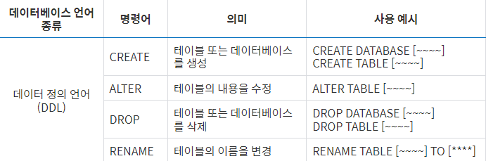 DDL은 DB의 구조를 정의, 제거, 변경할 수 있고 데이터 형식과 접근 방식 등 DB를 새로 생성하거나 변경할 목적으로 사용한다.