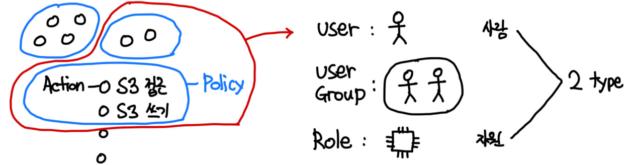 user에게는 S3 접근과 S3 쓰기에 대한 정책을 주고 다른 그룹에 EC2나 RDS 같은 액세스 권한을 줄 수 있는 것처럼 세분화가 가능하다.