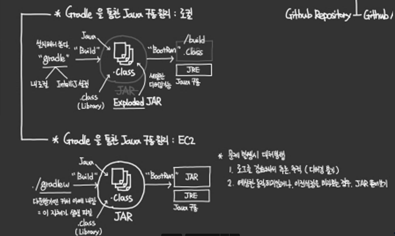 내가 할 때(로컬)는 JS할 때 했던 것처럼 우리가 개발해서 Java 파일이 나오고 이것을 Compile, Build, 라이브러리 install 해서 .class 나온 것이 JAR, WAR다.