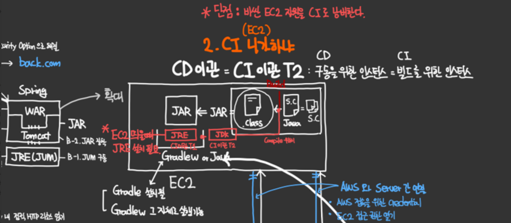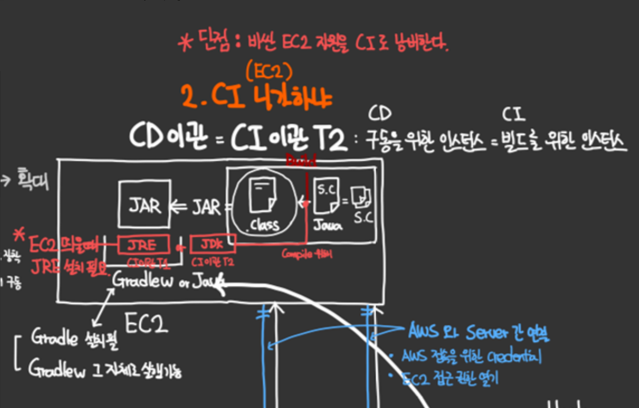 2) 니가 하는지(CI를 EC2가 함) : 단점 → 비싼 EC2 자원을 CI로 낭비. 낭비하면 기다림이 필요.