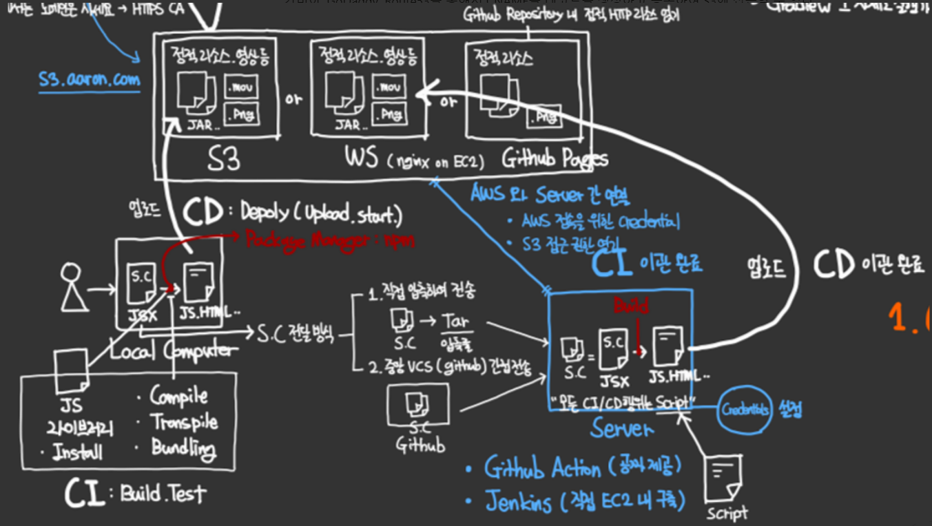 GitHub Actions를 이용한 자동화와 AWS CLI를 활용한 업로드가 있다.