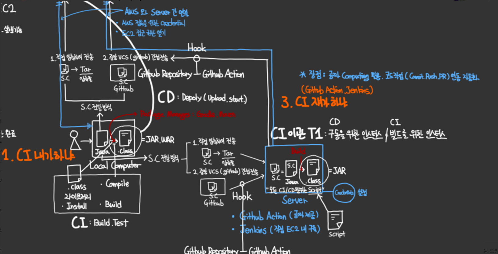 CI는 1) 내가하는지 (로컬) 2) 니가 하는지(EC2) 3) 쟤가 하는지(Github Action, Jenkins)