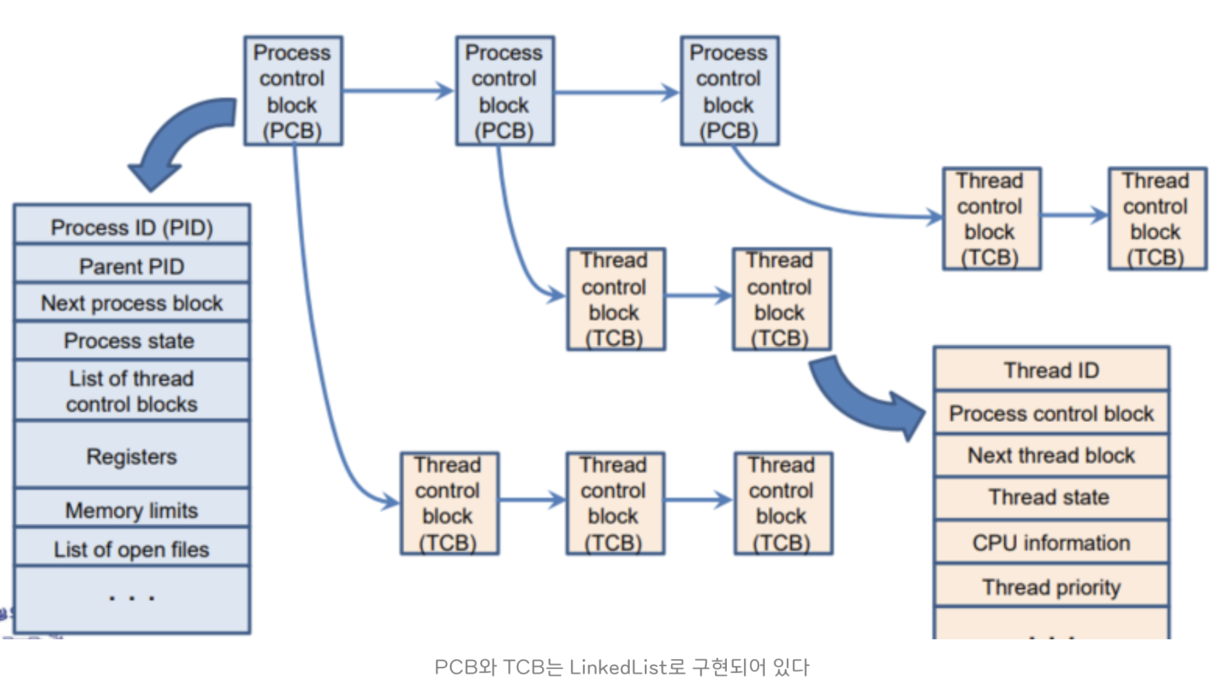 쓰레드가 프로세스 내에 있는 것처럼 TCB는 PCB 안에 들어있습니다.