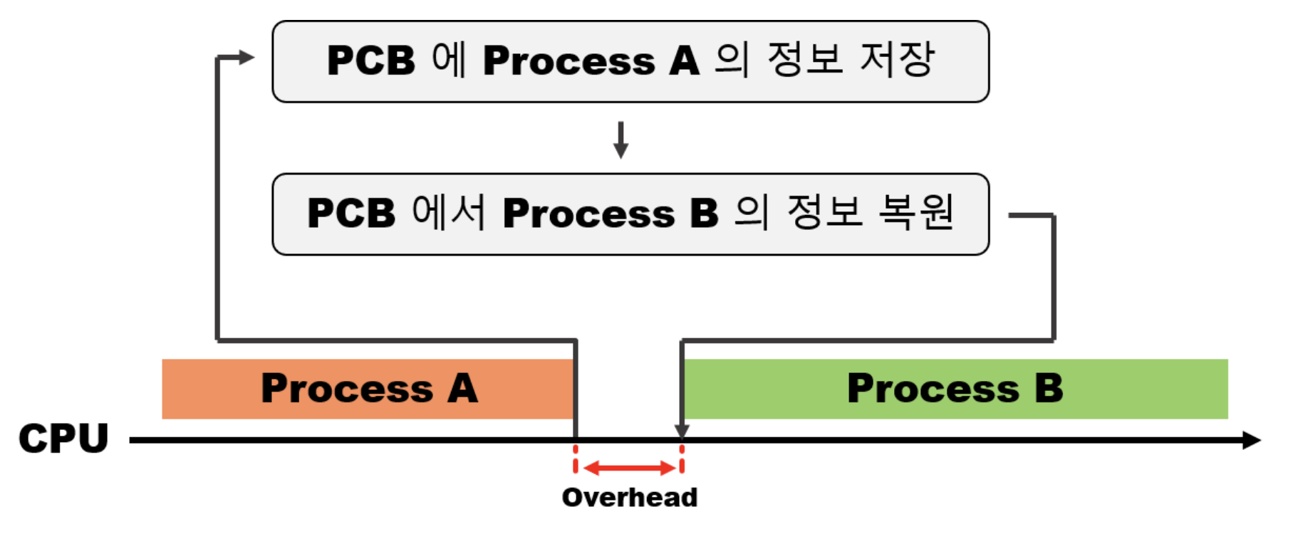 CPU가 한 프로세스에서 다른 프로세스로 전환할 때 발생하는 일련의 과정입니다.