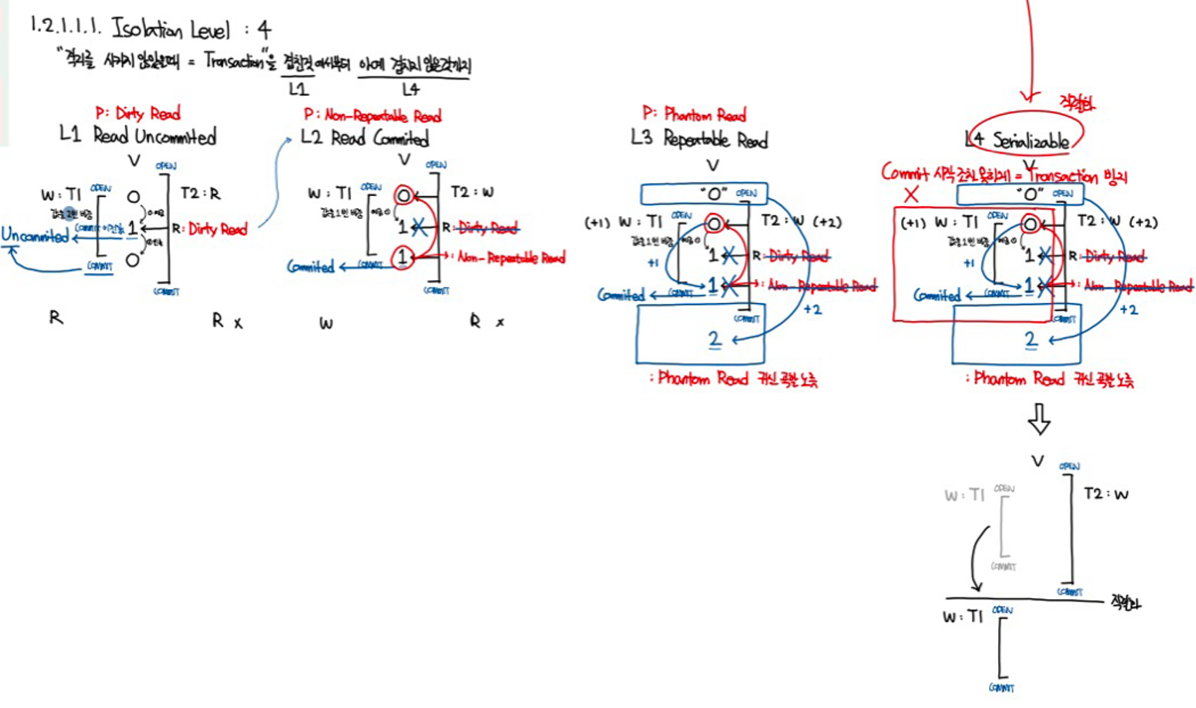 한 개의 트랜잭션이 다른 트랜잭셔닝 변경한 데이터에 대한 접근할 수 있는 강도를 의미.