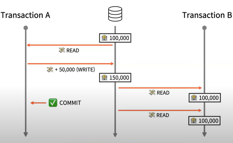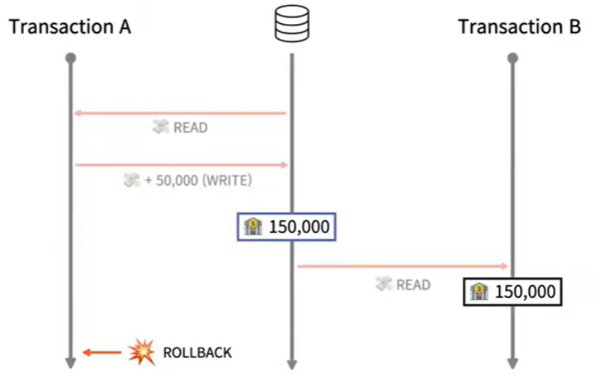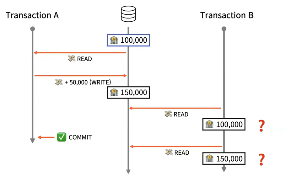 3) B는 10만원을 읽었는데 A가 커밋한 뒤 B가 다시 DB를 읽으면 10만원이 아닌 15만원을 읽게 된다.