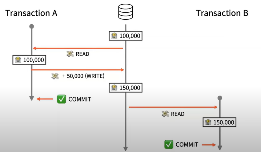 1) DB에 있는 10만원을 A가 읽고 쓰고 해서 15만원이 된 상태.
