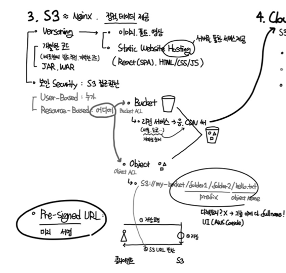 단순한 파일 저장 영역 + 다양한 AWS 서비스의 사용 로그 저장, 정적 웹 사이트 호스팅, EBS 스냅샷의 저장 영역 기능 등을 가지고 있습니다.