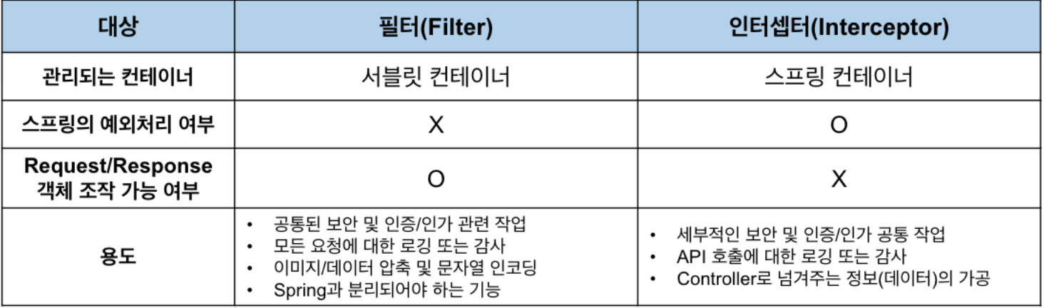 꼭 Filter를 사용해야 하는 경우가 아니라면 인터셉터를 사용하는 것이 더 편리.
