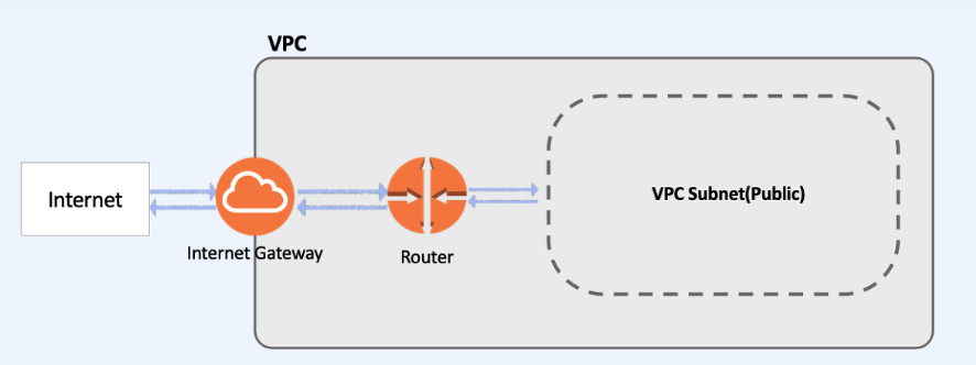 위 그림처럼 VPC 내부에는 기본적으로 Routing이 자동 생성되어 있고 서브넷 내의 모든 Resource는 자신이 소속된 서브넷이 아닌 다른 곳으로 향하고자 할 때 VPC Router를 거치게 된다.