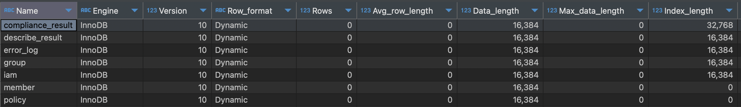 🔻 Index_length : 해당 테이블에 대한 모든 인덱스의 총 길이를 바이트 단위로 나타냅니다.
