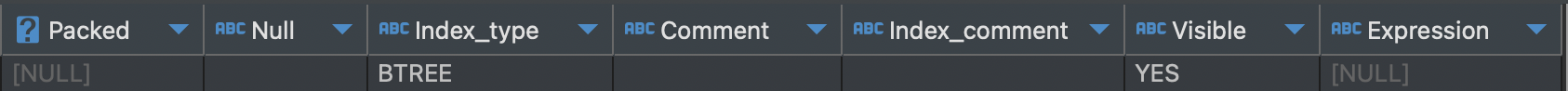 🔻 Visible : 인덱스가 현재 쿼리에서 사용 가능한지를 보여줌.