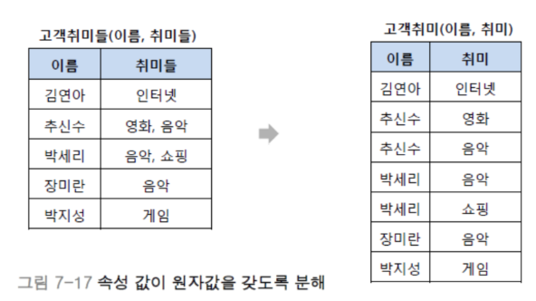 릴레이션의 모든 속성 값이 원자값을 갖는 경우다.