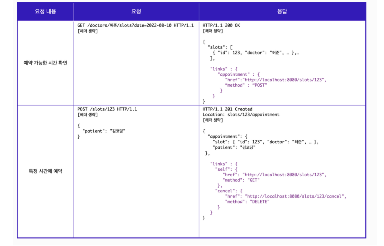 → 응답: 데이터(리소스) -> 의사 허준의 예약 가능한 시간대