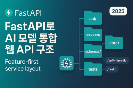 레이어 + 기능 혼합형 구조: api/(라우터)·services/(비즈/모델)·schemas/(입출력 모델)·core/(설정/라이프사이클)·tests/.