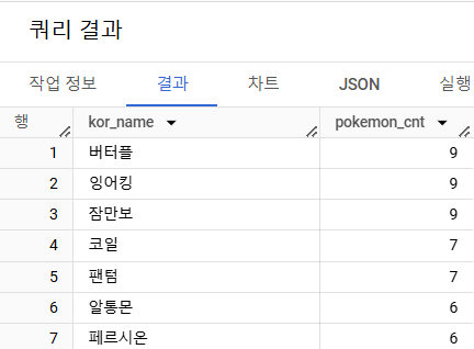 # 쿼리를 작성하는 목표, 확인할 지표 : 포켓몬의 수(이름 명시) # 쿼리 계산 방법 : trainer_pokemon(status가 Active, Training) + pokemon => GROUP BY 집계(COUNT) # 데이터의 기간 : X # 사용할 테이블 : trainer_pokemon, pokemon # Join KEY : trainer_pokemon.pokemon_id = pokemon.id # 데이터 특징 : 보유했다:status가 Active, Training한 경우. Released는 방출했다는 것을 의미 -(회사에선, 이러한 정의를 알려주지 않고 직접 물어봐야 한다) _______________________________________________________________________________________________________________ / 쿼리 예상: 1) trainer_pokemon에서 status가 Active, Training인 경우만 필터링(where) 필터링을 먼저 하는 것이 좋을까? 혹은 JOIN을 하고 그 후에 Active, Training을 필터링하는 것이 좋을까? ->JOIN을 할 테이블들을 일단 줄이고 (Row 수를 줄인다) 그 후에 JOIN을 한다 ->연산량 관점에서 먼저 줄이고 JOIN이 효율적 JOIN을 한 후에 WHERE 조건을 건다고 하면 : 379 Row * pokemon JOIN WHERE 조건을 건 후에 JOIN을 한다고 하면 : 333 Row * pokemon JOIN =>핵심 : Table을 그대로 사용해야 하는가? 혹은 줄이고 쓰는 게 내 목적에 맞는가? 생각해보는 것 2) 필터링한 결과를 pokemo table 과 JOIN 3) 2)의 결과에서 pokemon_name, COUNT(pokemon_id) AS pokemon_cnt _______________________________________________________________________________________________________________ / SELECT -- tp.*, -- p.id, -- p.kor_name kor_name, COUNT(tp.id) AS pokemon_cnt -- join할 때 자주 나올 수 있는 에러 <Column name id is ambiguous at [6:9]> id가 모호하다. 더 구체적으로 말해달라 -- join에서 사용하는 테이블에 중복된 컬럼 이름이 있으면 꼭 어떤 테이블의 컬럼인지 명시해야 함 -- id => tp.id FROM ( SELECT id, trainer_id, pokemon_id, status FROM basic.trainer_pokemon WHERE status IN ("Active", "Training") ) AS tp LEFT JOIN basic.pokemon AS p ON tp.pokemon_id = p.id WHERE 1=1 -- 1=1은 무조건 TRUE를 반환 => 모든 ROW를 출력해라! -- 쿼리를 작성할 때 값을 바꿔가면서 실행해야 함 => 빨리 주석처리 하기 위해서 앞에 TRUE인 1=1을 넣고, AND쓰고 빠르게 주석처리하기도 함 GROUP BY kor_name ORDER BY pokemon_cnt DESC