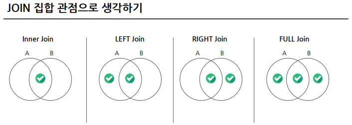 예) LEFT JOIN의 경우 : 기준 테이블 즉, 가장 LEFT 테이블에 무엇을 둘 것인가?