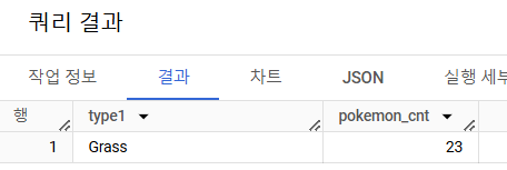 # 쿼리를 작성하는 목표, 확인할 지표 : 트레이너가 보유한 포켓몬 중에서 Grass 타입의 포켓몬 수 # 쿼리 계산 방법 : 트레이너가 보유한 포켓몬 조건 설정 => JOIN => Grass 타입으로 WHERE 조건 걸어서 COUNT -- 이 경우, Grass조건이 기준 테이블인 trainer_pokemon에 없는 컬럼-> JOIN후에 WHERE조건 설정 # 데이터의 기간 : X # 사용할 테이블 : trainer_pokemon + pokemon -- 어느 테이블을 왼쪽(기준)에 둘까? ->trainer_pokemon 테이블 : 트레이너가 포켓몬을 포획한 히스토리가 저장된 테이블. ->pokemon 테이블 : 포켓몬의 메타 정보. 트레이너가 포획을 하거나, 하지 않은 모든 포켓몬의 정보가 저장됨. ->pokemon 테이블을 왼쪽에 두면 -> pokemon 중에 포획되지 않았던 포켓몬들은 trainer_pokemon에 없을 것. -> NULL ->trainer_pokemon 테이블을 왼쪽에 두면 -> 트레이너가 보유했던 포켓몬들을 기반으로 포켓몬 데이터만 추가. -> NULL이 추가되지 않음 -- 핵심 : 기준이 되는 테이블은 내가 구하고자 하는 데이터가 어디에 제일 잘 저장되어 있는가? 를 기반으로 생각 # Join KEY : trainer_pokemon.pokemon_id = pokemon.id # 데이터 특징 : 1번 문제와 동일 _______________________________________________________________________________________________________________ / SELECT -- tp.*, # 확인용 p.type1, COUNT(tp.id) AS pokemon_cnt FROM ( SELECT id, trainer_id, pokemon_id, status FROM basic.trainer_pokemon WHERE status IN ("Active", "Training") ) AS tp LEFT JOIN basic.pokemon AS p ON tp.pokemon_id = p.id WHERE type1 = "Grass" GROUP BY type1 ORDER BY 2 DESC # 2 대신에 pokemon_cnt도 가능