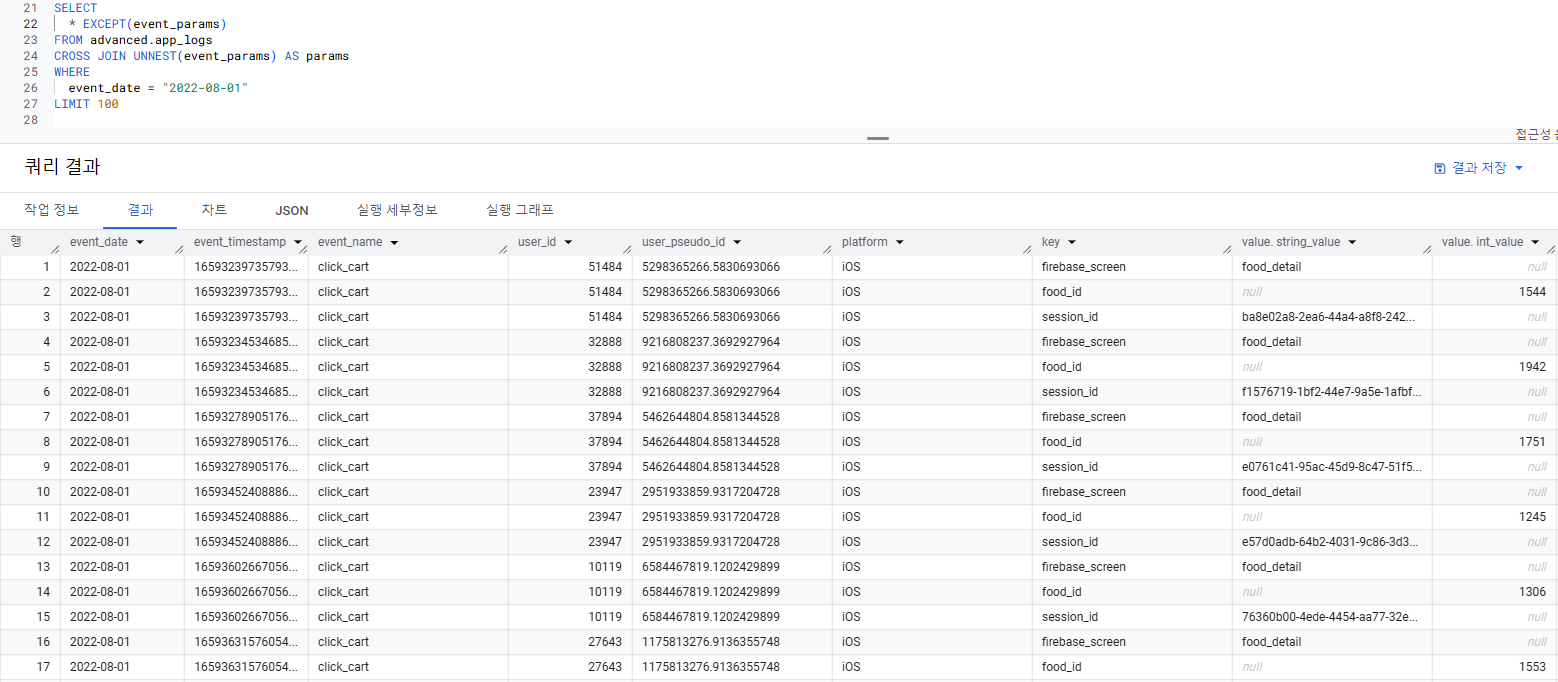 2) 우선 event_params에 UNNEST가 필요해보임