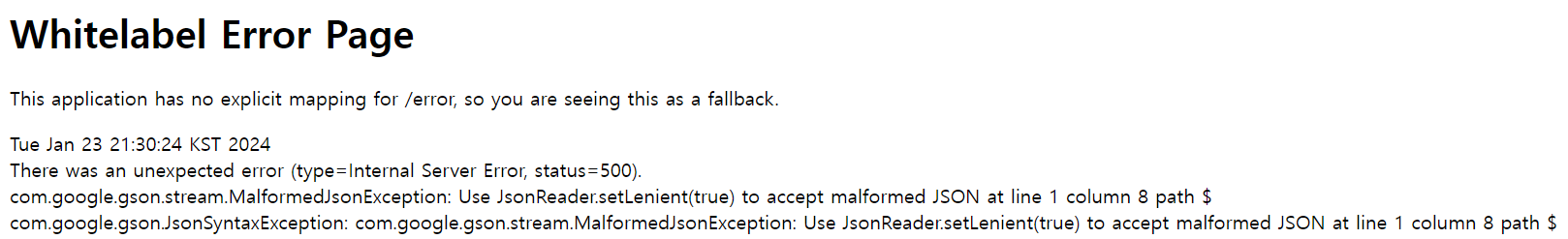 발생한 이유는 gson에서 json을 처리할 때 json 형식의 RFC 4627을 엄격하게 지키지 않아서라고한다 (json data에 불필요한 값이나 띄어쓰기가 있는 경우 등등)