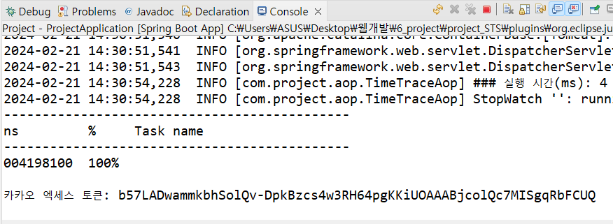 accessToken이 console에도 잘 찍히는것을 볼 수 있다