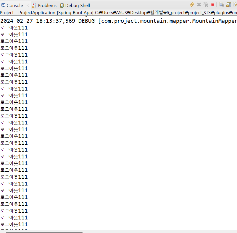 console에 로그아웃 1이 루프 돌고있는것이 보였다