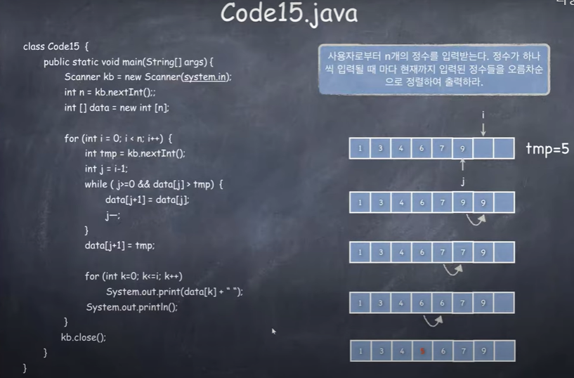 data[j + 1] = data[j]; // 한칸 뒤로 이동