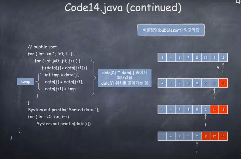 //data[j] 와 data[j + 1]의 자리를 바꾼다(swap)