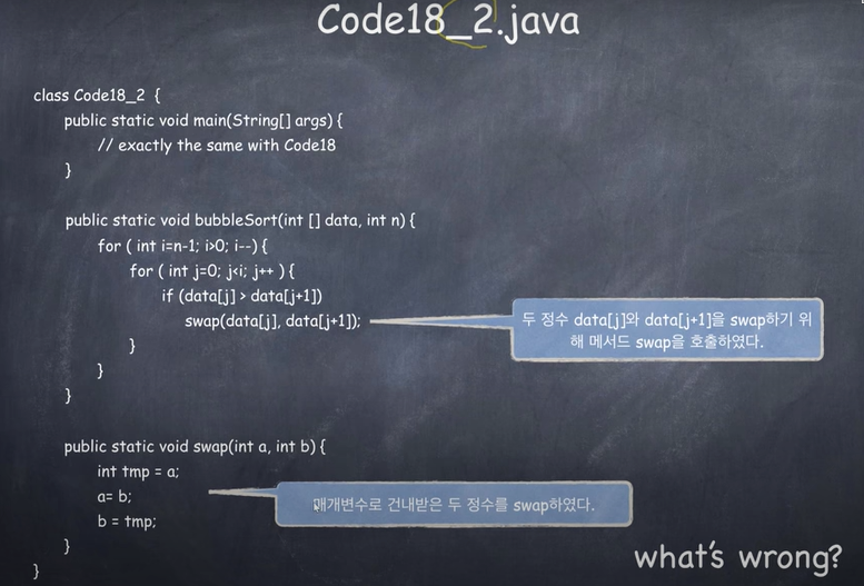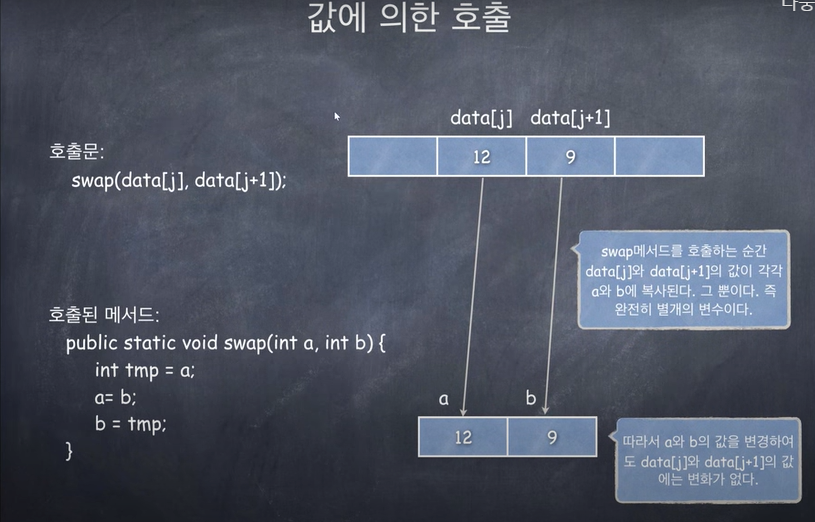 값에 의한 호출이기 때문에 a와 b의 값을 변경해도