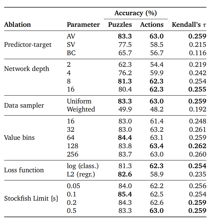 - ground-truth 순위는 Stochfish의 action-value QSF(s,a)로 제공됨