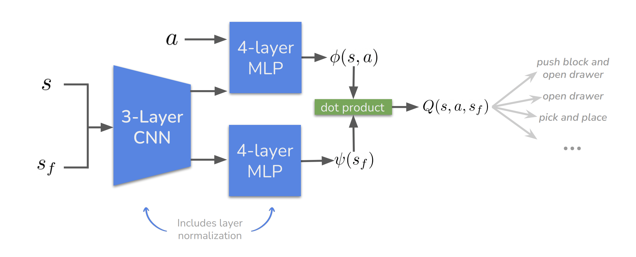 - 더 디테일하게 보면 ϕ(s,a)와 ψ(g)의 last layers를 UNIF[−10−12,10−12]로 초기화하고 서로 가깝게 유지될 수 있도록 함