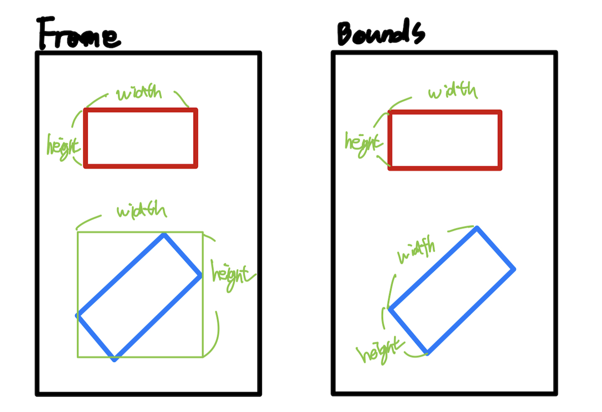 CGSize)width, height 값을 인자로 받는다.우선 frame, bounds에 대한 공식문서의 설명을 인용하면 아래와 같다.