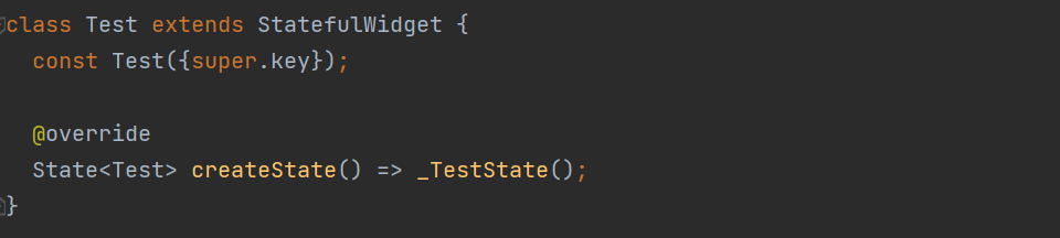 StatefulWidget을 상속받아서 createState()함수를 @override하고 있다.