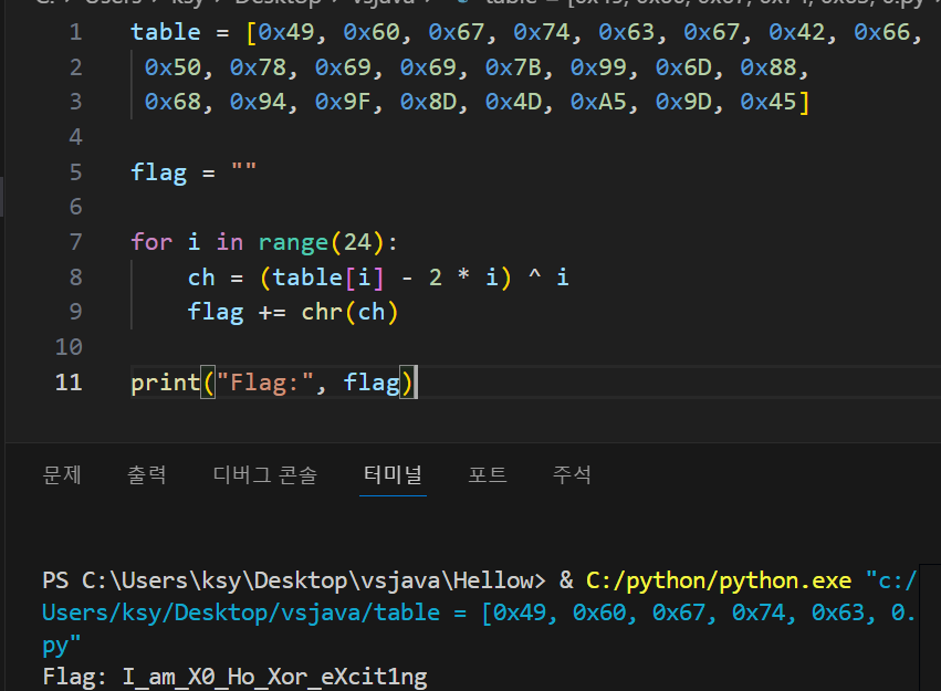 byte_140003000[i] == (입력[i] ^ i) + 2 * i