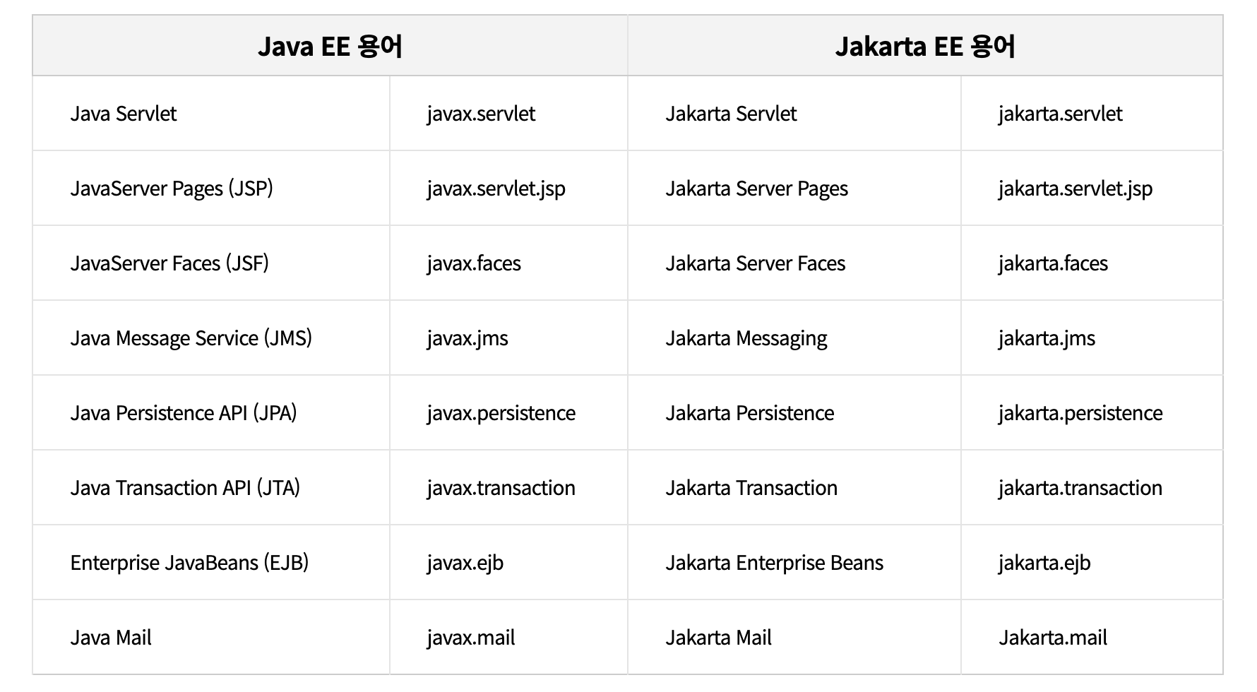 그 이유는 새로운 플랫폼으로 확장된 Jakarta EE는 Java EE와 호환되지 않기 때문이다.