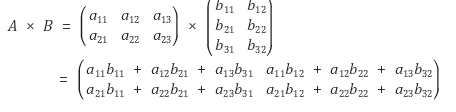 행렬에서의 곱은 행렬간의 더하기, 빼기와는 다르게 (x 기호 앞의 행렬의 열의 개수) = (x 뒤에 있는 행렬의 행의 개수)일때만 곱셈이 가능합니다.
