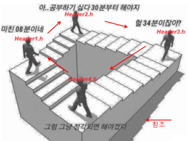 - 가장 좋은 방법은 헤더들이 단방향으로 참조하도록 설계하는 것입니다.
